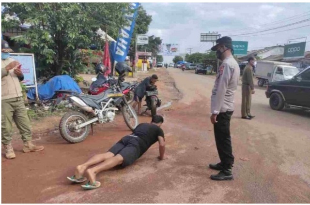 ” Petugas gabungan langsung memberikan sanksi teguran Lisan dan sanksi fisik berupa Push up kepada warga yang terjaring operasi Yustisi” pungkasnya. | Yesi/Nanda