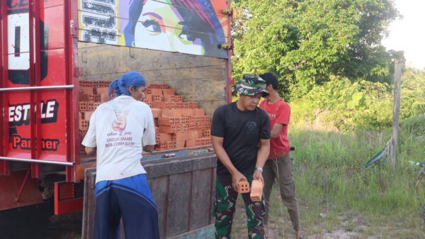 Di tengah aktivitas pembangunan, Sertu Hendrawadi tampak aktif membantu warga memindahkan batu bata dari kendaraan ke lokasi renovasi masjid. Kegiatan ini menjadi salah satu bentuk nyata sinergi antara TNI dan masyarakat dalam mendukung pembangunan sarana ibadah di desa.