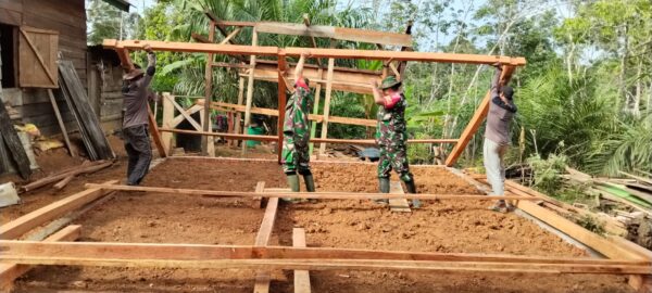 Dalam kegiatan tersebut, Serma M. Syahrizal bersama Sertu Edi Mulyanto bahu-membahu dengan warga setempat melaksanakan pemasangan tiang serta kuda-kuda rumah. Suasana penuh keakraban dan gotong royong tampak jelas, mencerminkan kemanunggalan TNI dengan rakyat.