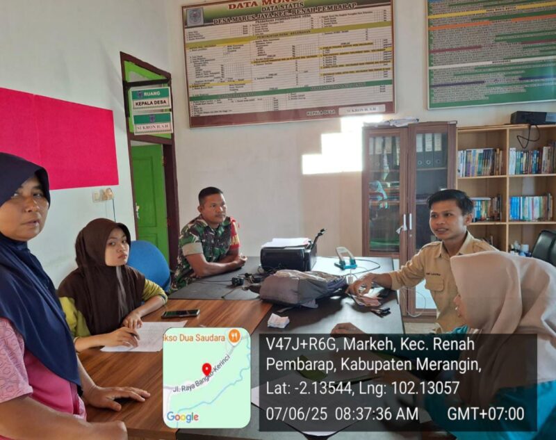 Satukomando.com Merangin.Babinsa Koramil 420-07/Sei Manau Serda Eko ediyanto melaksanakan Komunikasi Sosial (Komsos) dalam rangka Pembinaan Teritorial dengan masyarakt Desa Marus Jaya Kec, Renah pembarap Kabupaten Merangin.(07/06/2025)