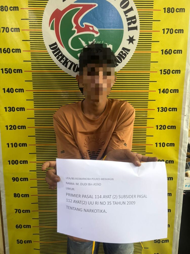 Berbekal informasi tersebut, Kasat Resnarkoba Polres Merangin AKP Rezi Darwis,SH.,M.M., langsung memerintahkan Tim Opsnal untuk melakukan penyelidikan. Tepatnya pada hari jumat (12/12/2025) sekira pukul 01.00 Wib, Tim berhasil mengamankan seorang terduga pelaku berinisial MD (27) saat dalam perjalanan tepatnya dijalan Desa Langling Kec.Bangko Kab. Merangin.