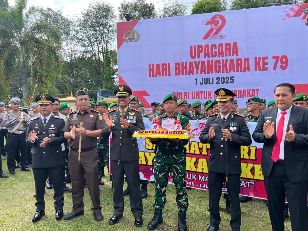 Merangin Satukomando.com , 1 Juli 2025 ā Dalam semangat sinergitas TNI-Polri yang semakin solid, Dandim 0420/Sarko, Letkol Inf Suyono, S.Sos., bersama seluruh Perwira Staf dan para Danramil jajaran Kodim 0420/Sarko, menghadiri upacara peringatan Hari Ulang Tahun (HUT) Bhayangkara ke-79 yang digelar di halaman Mapolres Merangin, Selasa (1/7/2025).