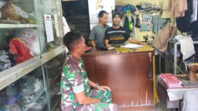 Jambi – Satukomando.com Dalam upaya membangun kedekatan dengan warga di wilayah binaannya, Serda Hersya, anggota Babinsa Koramil 12/Pasar Kodim 0415/Jambi, melaksanakan komunikasi sosial (Komsos) bersama komunitas penjahit pakaian. Salah satu kegiatan ini dilakukan bersama Bapak Feri, seorang penjahit di Jln W.R. Supratman, Kelurahan Pasar, Kecamatan Pasar, Kota Jambi, pada Sabtu (20/07/2023).