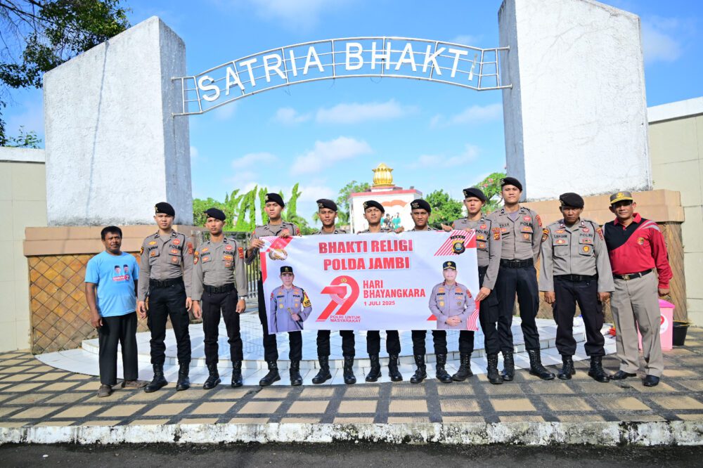 Jambi — Satukomando.com Sambut Hari Bhayangkara ke-79, Polda Jambi melaksanakan kegiatan Bakti Religi serentak di sejumlah rumah ibadah dan Taman Makam Pahlawan (TMP), Senin pagi (16/6).