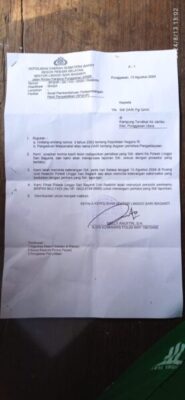Berdasarkan penerbitan sp2hp/26/VIII/Reskrim, atau disebut surat pemberitahuan Perkembangan Hasil Penyelidikan (SP2HP) melalui kanit reskrim Bripka Mulyadi,