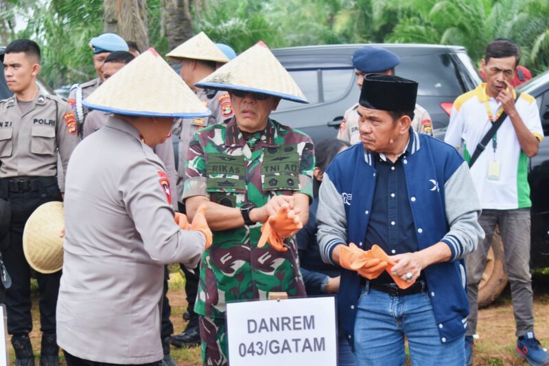 SATUKOMANDO.COM,Lampung – Dalam rangka mendukung program swasembada pangan nasional, Komandan Korem (Danrem) 043/Gatam Brigjen TNI Rikas Hidayatullah,S.E., M.M, bersama forkopimda Provinsi Lampung dan masyarakat, melaksanakan penanaman jagung satu juta hektar secara serentak, Selasa (21/1/2025) yang berlokasi di areal lahan PTPN I Reg 7 Kecamatan Natar Kabupaten Lampung Selatan.