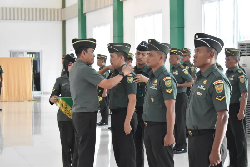 SATUKOMANDO.COM – Bertempat di Aula Sudirman Makorem 043/Gatam, Jl. Teuku Umar Penengahan Bandar Lampung, Komandan Korem 043/Gatam, Brigjen TNI Rikas Hidayatullah, S.E., M.M., memimpin acara Laporan Korps Kenaikan Pangkat Perwira dan Pelantikan Kenaikan Pangkat Bintara dan Tamtama, periode 1 Oktober 2024 dan dilanjutkan dengan acara syukuran. Rabu (02/10/2024).