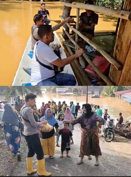 Sarolangun – Satukomando.com Di tengah banjir setinggi sekitar 50 -100 sentimeter, Kapolsek Batin VIII Itu Erik Kurniawan. SH bersama anggotanya mengangkut bantuan menggunakan perahu menyalurkan makanan dan air bersih bagi para warga terdampak banjir di Kecamatan Batin VIII, Kabupaten Sarolangun.