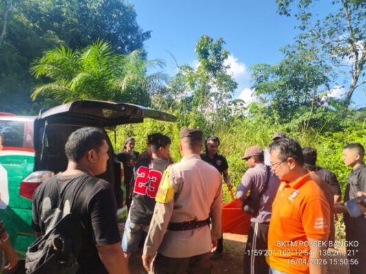 Merangin Satukomando-com – Jambi. Warga Desa Aur Berduri Kecamatan Nalo Tantan digegerkan dengan penemuan sesosok mayat laki-laki, di ruas jalan PT Sesra Lama Rt 11 Desa Aur Berduri Kec. Nalo Tantan Kab. Merangin, pada Kamis (16/04/2026) sekira pukul 12.10 Wib, oleh warga yang sedang panen sawit disekitar lokasi penemuan.