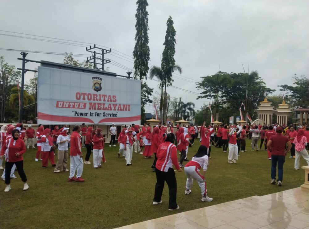 Merangin Satukomando.com – Polres Merangin menggelar kegiatan “Semarak Merah Putih” yang berlangsung meriah dan penuh kebersamaan. Acara ini diisi dengan berbagai kegiatan menarik, mulai dari jalan santai yang diikuti oleh seluruh anggota Polres beserta keluarga, senam sehat untuk menjaga kebugaran jasmani, hingga pertandingan futsal dan domino yang memacu semangat sportifitas antar anggota.