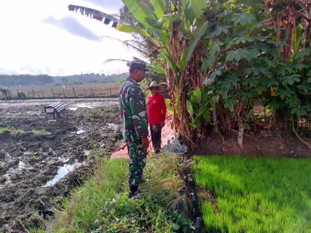 Sarolangun Satukomando.com Muara Limun – Babinsa Koramil 02/M.Limun Kodim 0420/Sarko Sertu Subagio melaksanakan pendampingan peninjauan tanaman padi milik warga binaan.(30/06/2025)