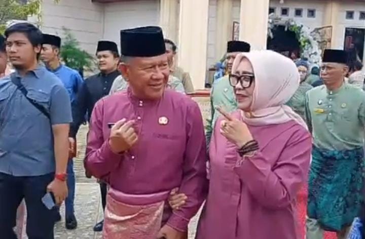 Didampingi Wakil Ketua TP PKK Merangin, Hj. Emi Khafidh, Wabup Khafidh turut hadir dalam paripurna yang mengusung tema “Khidmat untuk Batang Hari Super Tangguh” tersebut.